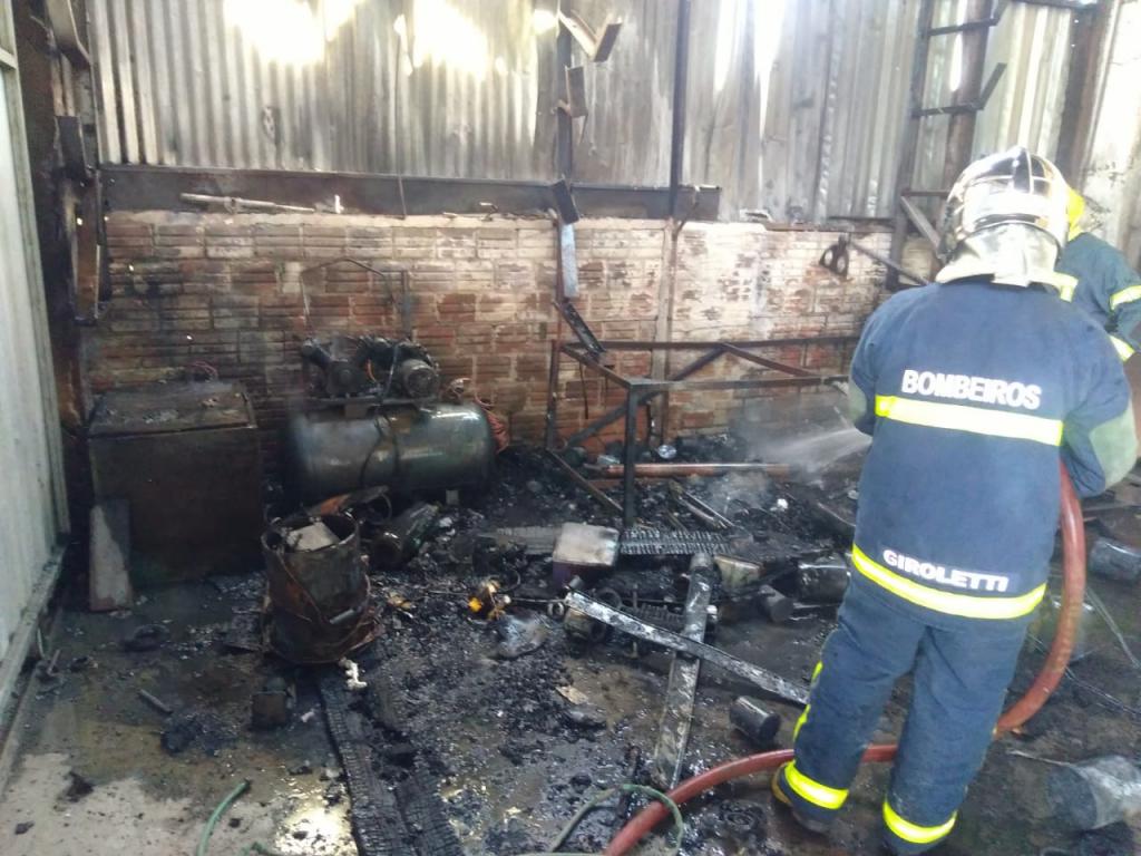 Um incêndio em um barracão onde funciona uma oficina de chapeação de automóveis, localizada na Rua Ernesto Wiezer no Jardim Independência em Toledo, acabou destruindo várias ferramentas de trabalho, como um compressor aparelho de solda, furadeira, máquina de pressão de lavar, entre outros.