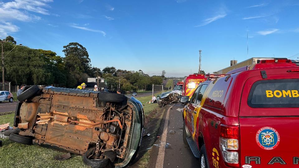 Acidente mobilizou grande aparato de socorristas na manhã deste domingo (31) na BR-277, em Cascavel. A batida aconteceu nas proximidades do viaduto Carelli, na região Sul da cidade, e envolveu um Audi A3 e um Chevrolet Agile.