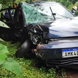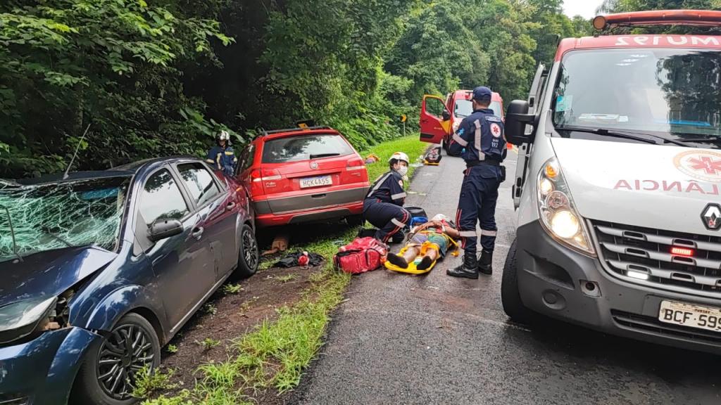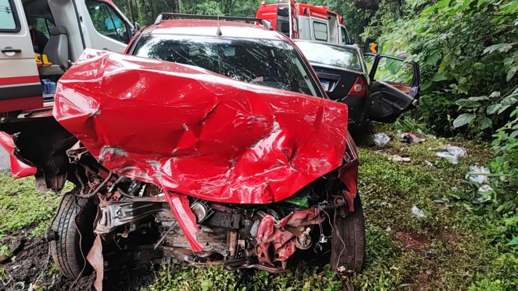 Conforme a polícia, um carro vermelho com placas de Ouro Verde transitava no sentido Toledo a Ouro Verde. Na altura do KM 396 da rodovia, ele invadiu a pista contrária e colidiu frontalmente com um carro de cor azul com placas de Toledo.