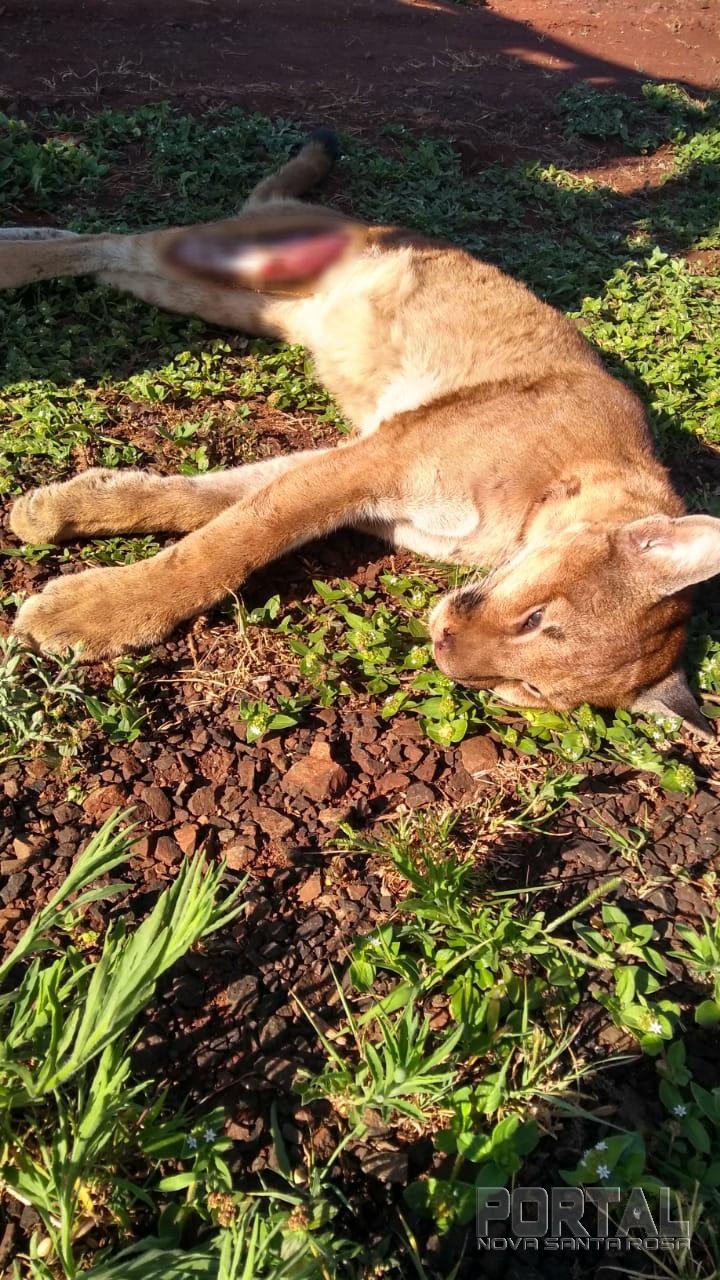 Uma Onça Parda foi encontrada morta na manhã deste sábado na rodovia próximo ao distrito de Vila Nova em Toledo.