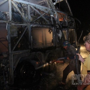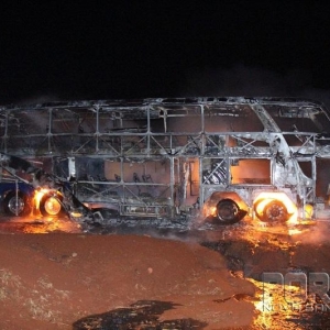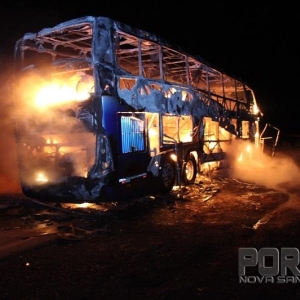 Um ônibus de turismo de dois andares ficou completamente destruído após um incêndio que segundo declarações do motorista, iniciou na parte traseira do veículo, provavelmente no motor disse o condutor.