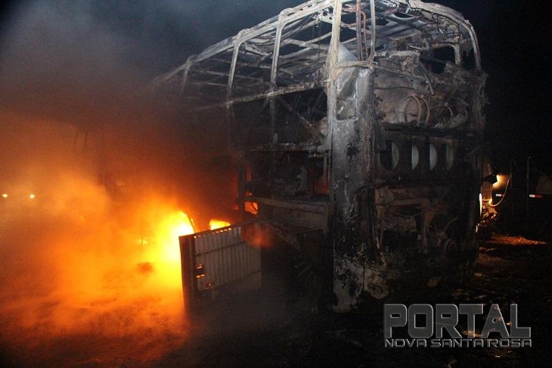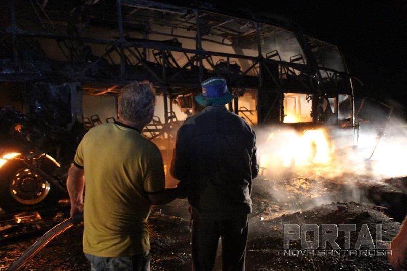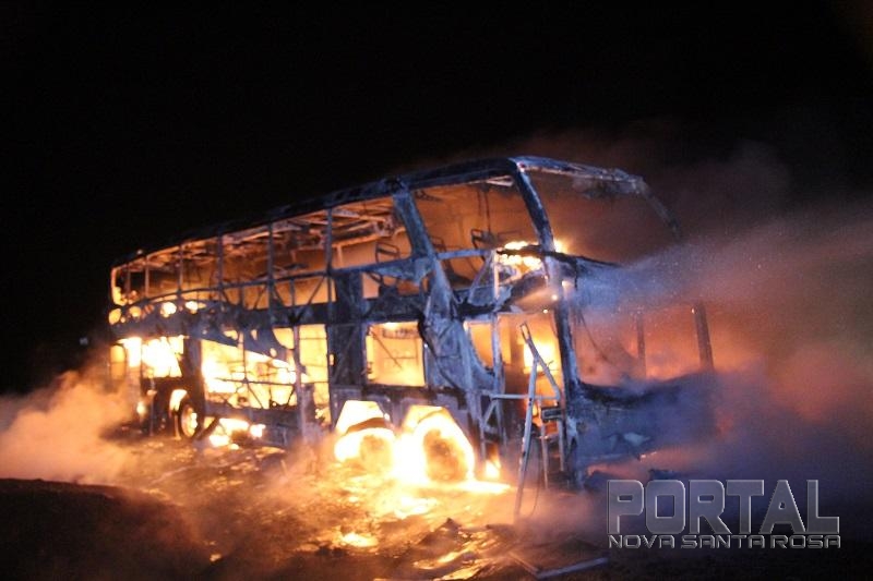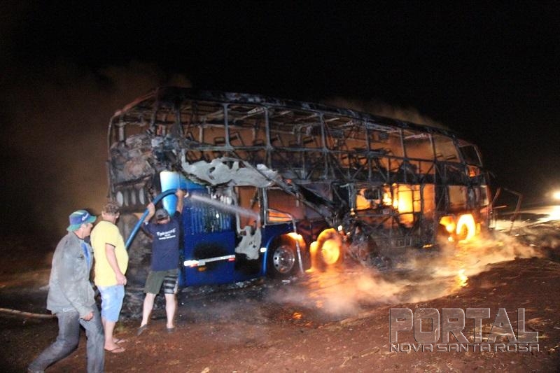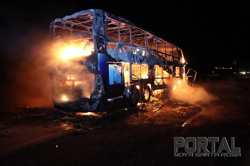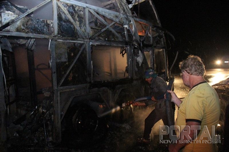 As chamas destruíram o ônibus rapidamente, um caminhão pipa de Maripá e um de Nova Santa Rosa chegaram rapidamente e controlaram as chamas, a Polícia Militar de Nova Santa Rosa foi até o local controlar o trânsito.