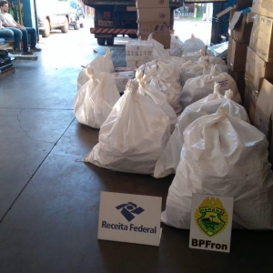 Nesta quinta-feira (07), Policiais Militares do BPFron - Batalhão de Polícia de Fronteira, durante a Operação Sul, desenvolvida em conjunto com equipes da Receita Federal e Polícia Federal, foi realizado abordagem a estabelecimentos na Vila Portes em Foz do Iguaçu, no qual foram apreendidos aproximadamente 70 caixas de cigarros, 42 volumes de mercadorias diversas e 12 pneus de carro de origem estrangeiras.