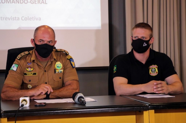 O balanço do trabalho conjunto das polícias foi divulgado nesta quinta-feira (07/01), no Quartel do Comando-Geral da PM, em Curitiba. "Iniciamos uma operação conjunta entre a PM e a PF, tanto na área investigativa quanto na área operacional, e também na área de cumprimento de mandados”, explicou o subcomandante-geral da PM, coronel Hudson Leôncio Teixeira.