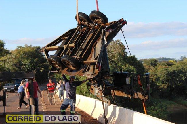 A operação contou com o apoio da Polícia Rodoviária Estadual de Santa Helena, Corpo de Bombeiros, mergulhadores e um caminhão guincho. A ponte foi fechada em uma ação para remover a carreta reboque com um Munck.