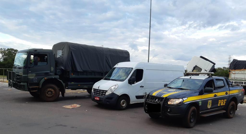 Na manhã dessa segunda (29), uma equipe do Exército Brasileiro abordou o veículo Van Renault, na BR 272, próximo à Vila Guarani, município de Guaíra. Os militares desconfiaram da procedência do veículo e solicitaram apoio dos policiais rodoviários federais, que procederam minuciosa verificação do veículo e sua documentação.