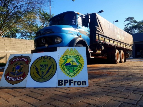O caminhão apreendido estava carregado com cigarros contrabandeados do Paraguai, que após contagem totalizaram aproximadamente 400 caixas.