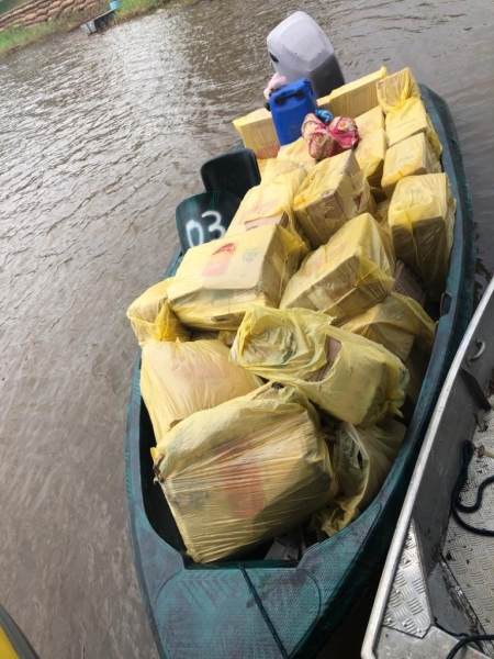 No local foram apreendidas uma lancha de fibra de vidro equipada com motor Mercury ProXS 250 HP e cerca de 50 caixas de cigarros paraguaios, um prejuízo estimado de R$ 200.000,00 para a organização criminosa.