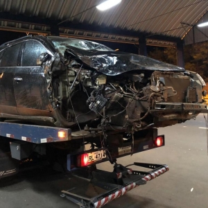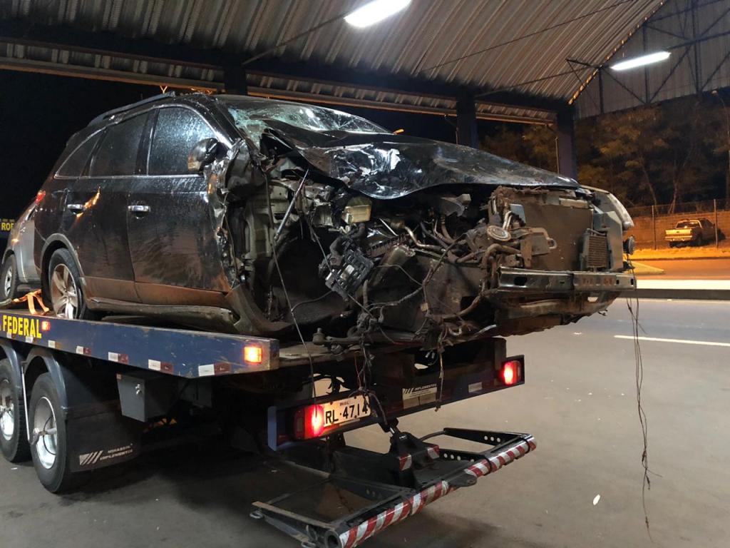 Na sequência, veio um veículo Vera Cruz em alta velocidade, que não conseguiu desviar da SW4, colidindo em sua traseira. O motorista desse veículo foi preso no local. Os demais veículos conseguiram empreender fuga.