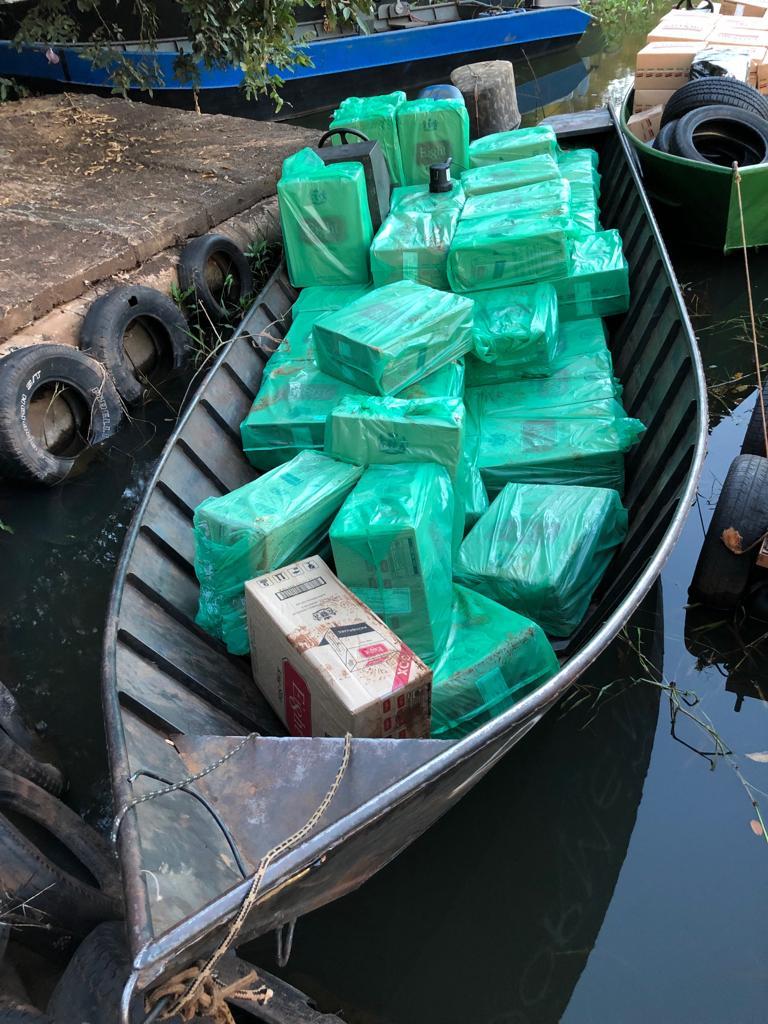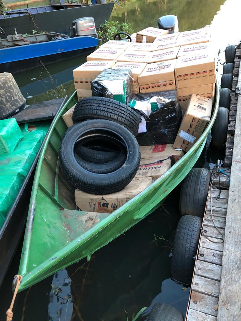 Foram aprendidos no local 01 Van e 02 embarcações carregadas com aproximadamente 150 caixas de cigarros, dois volumes de inseticidas e 04 pneus contrabandeados do Paraguai, um prejuízo de aproximadamente R$ 600.000,00 aos criminosos.