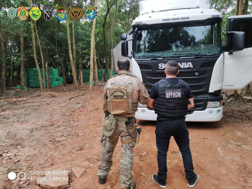 Na tarde deste domingo (05), mais uma grande apreensão foi realizada por equipes que participam da Operação Hórus, integrada pela Polícia Federal, COE/BOPE e BPFron da PMPR, TIGRE/PCPR, BOPE/PMMS, Força Nacional e pelo Exército Brasileiro, com apoio da SEOPI – Secretaria de Operações Integradas/MJSP.