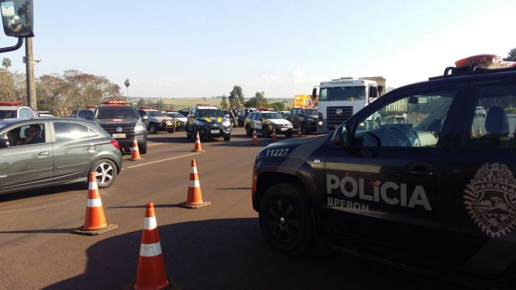 As ações acontecem nas barreiras fixas montadas em São Miguel do Iguaçu, próximo ao pedágio, e na PR-163 em Guaíra com revezamento de equipes nas 24h do dia.
