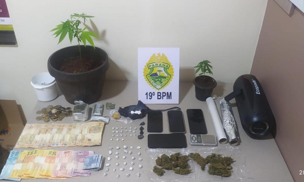 A partir dessa abordagem, as autoridades realizaram monitoramento da residência. Outros dois indivíduos foram detidos ao saírem da casa em momentos diferentes. Um deles foi flagrado com uma porção de crack e confessou que a droga foi adquirida no local, indicando ainda que havia mais entorpecentes na casa. O outro foi abordado portando um balde com porções de crack, maconha e cocaína.