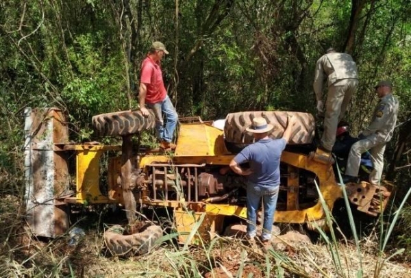 Conforme informações, um operador trafegava com sua máquina retroescavadeira, quando em determinado momento, acabou perdendo o controle do maquinário, saindo fora da pista, tombando em um barranco de aproximadamente seis metros.