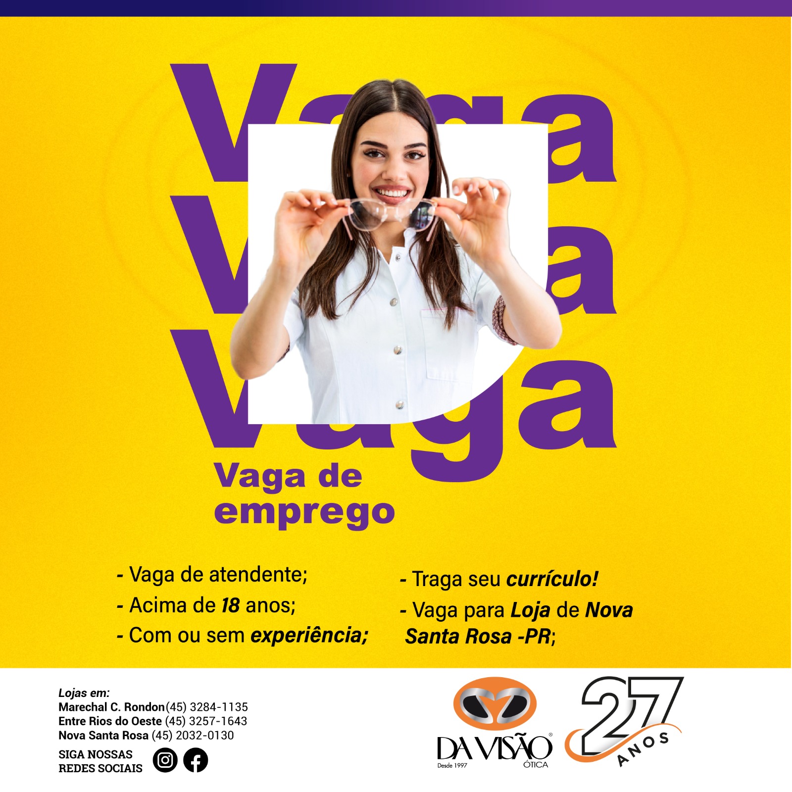 A Ótica Da Visão está com processo seletivo aberto para a contratação de um atendente para sua unidade em Nova Santa Rosa.