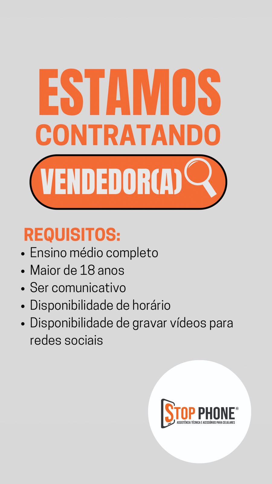 Está em busca de uma ótima oportunidade de trabalho em Nova Santa Rosa? Pois saiba que a Stop Phone está contratando!