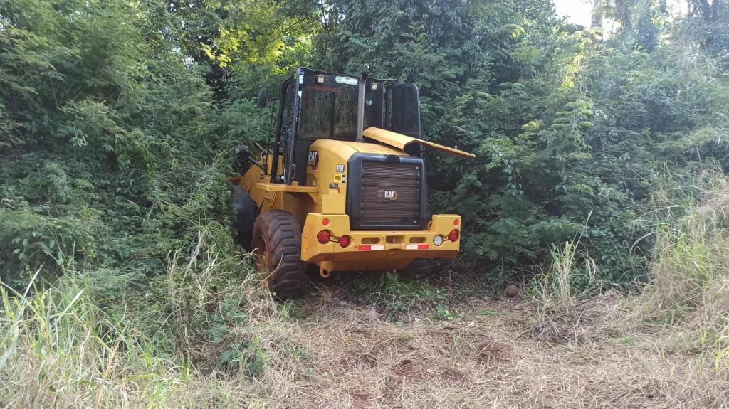 Equipes da Polícia Civil de Toledo após investigação localizaram uma máquina pá carregadeira no meio da mata numa estrada rural que fica as margens da rodovia PR-317 que liga Toledo a Ouro Verde do Oeste.