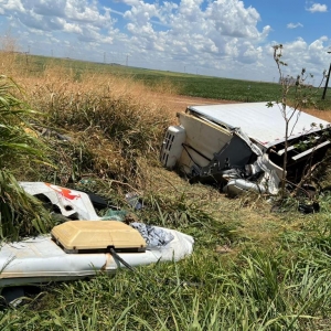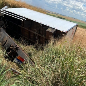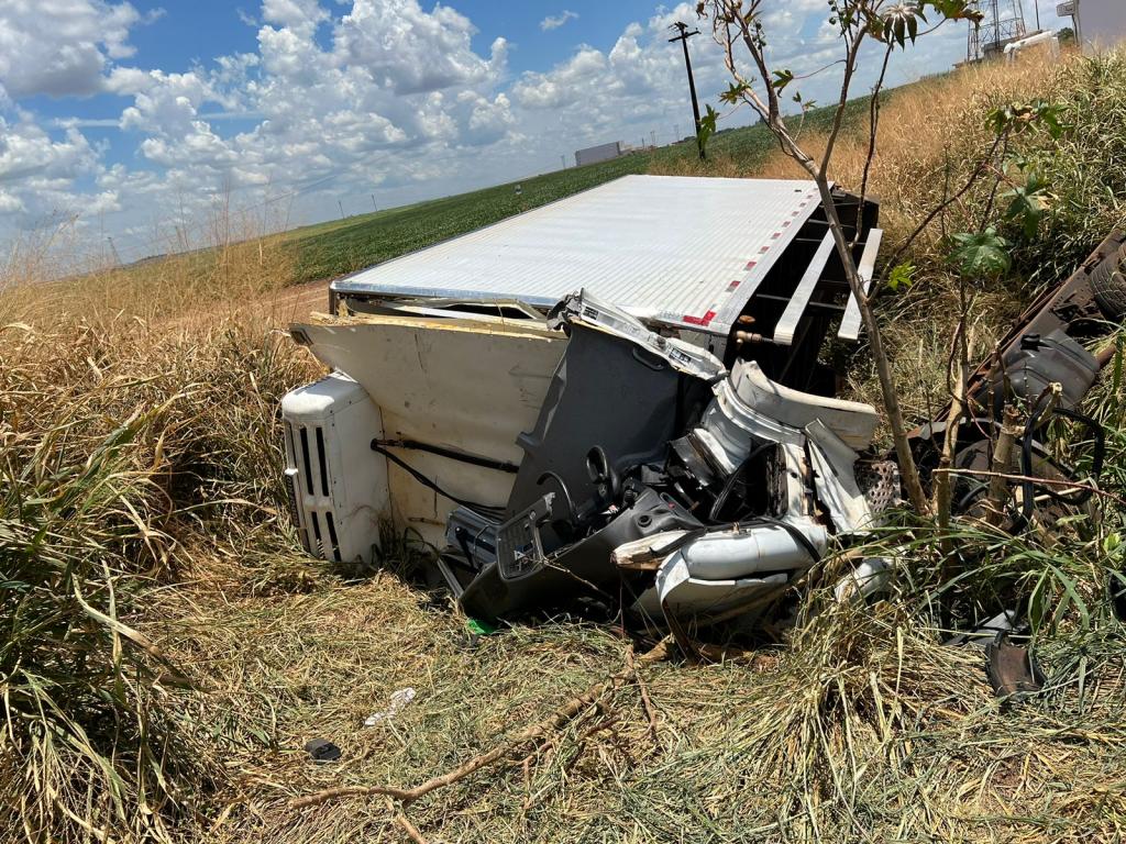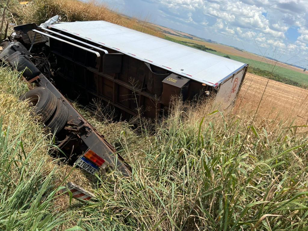 A vítima tentou frear seu caminhão para evitar a colisão, saiu para o acostamento e o veículo em que estavam veio a tombar às margens da pista.