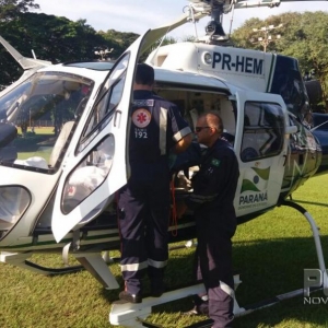 O helicóptero do SAMU esteve em Palotina na tarde desta terça-feira (01), para realizar a transferência de um paciente do Hospital Municipal.