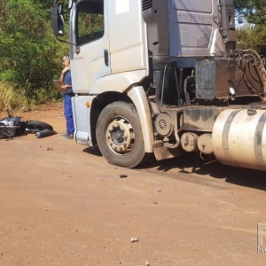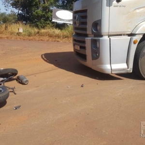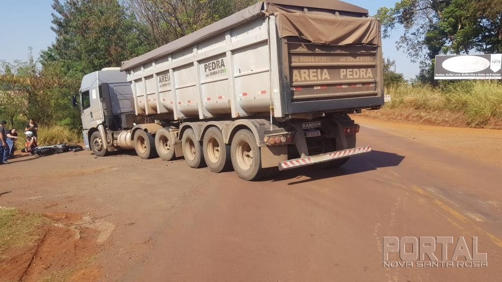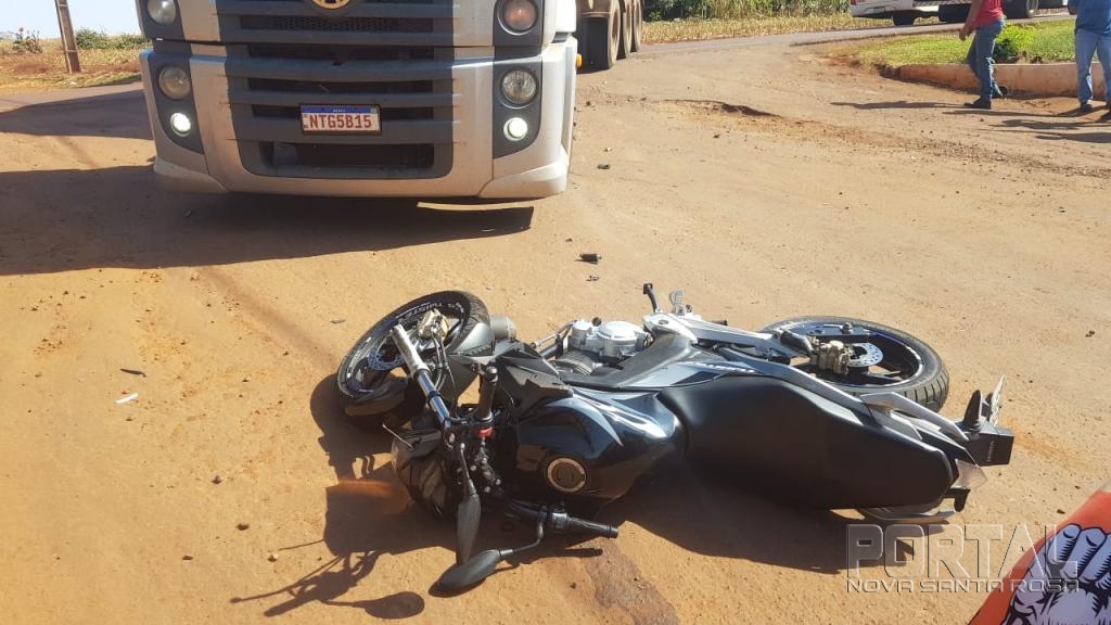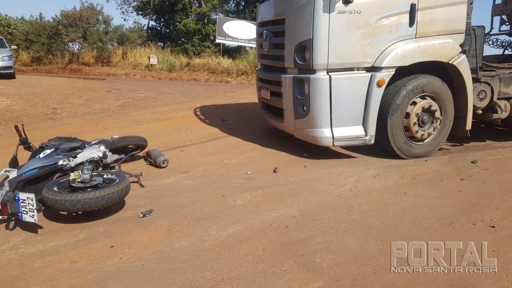 Um motociclista ficou ferido após se envolver em um acidente com um caminhão, na manhã desta quarta-feira (03).