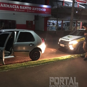Em deslocamento a delegacia a equipe cruzou com o segundo veículo , o Palio de cor prata com placas AQX-2403 de Cascavel, foi dada voz de abordagem ao mesmo, onde durante verificação foi constato que o veiculo estava com pendências de licenciamento e foi recolhido ao pátio da Policia Militar de Palotina.