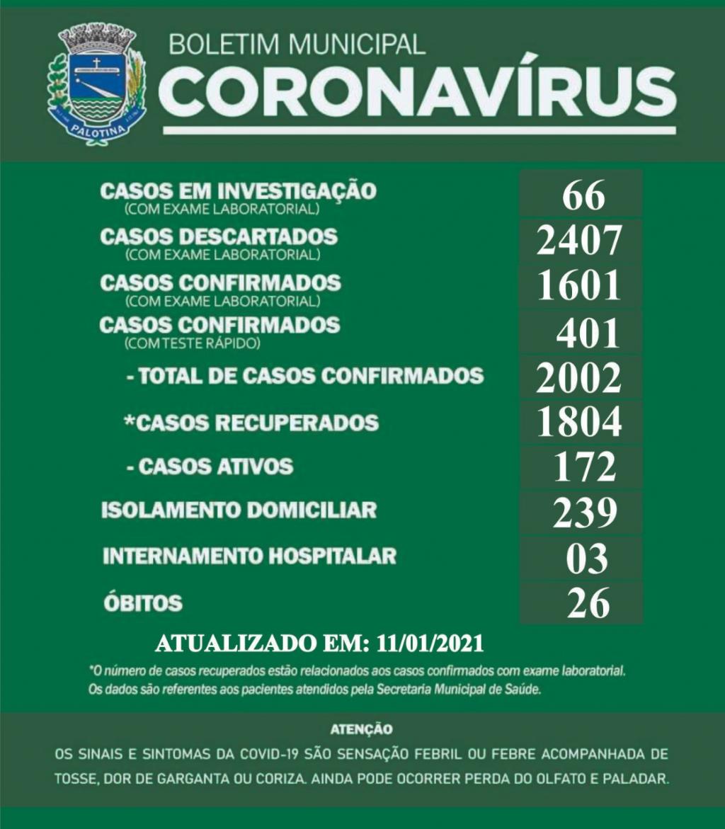 Além do 26º óbito, o boletim da Secretaria Municipal de Saúde desta segunda-feira (11), registra também a confirmação de 47 novos casos de Covid-19. O número de casos ativos subiu de 138 para 172.