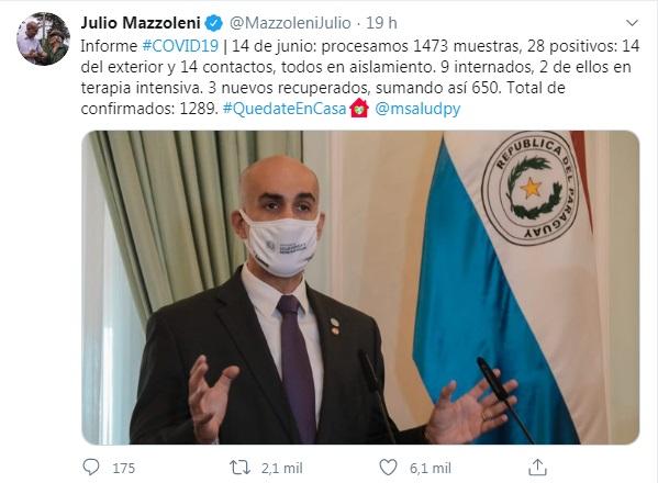 O Ministério da Saúde do Paraguai contabilizou neste domingo (14) 1.289 casos positivos de Covid-19. Foram realizados 1.473 testes, dos quais 28 testaram positivo.