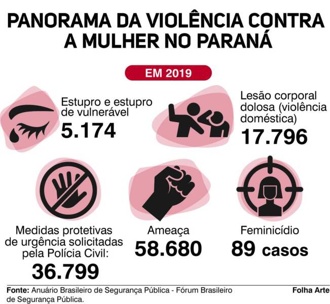 Mais de 17 mil casos de lesão corporal em decorrência de violência doméstica foram registrados em 2019 no Paraná, um aumento de 22% em relação ao ano anterior. No primeiro semestre deste ano, em meio à pandemia, 9 mil denúncias foram formalizadas.