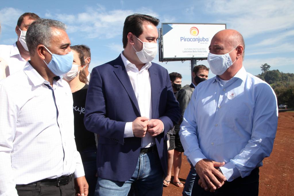PRESENÇAS – Participaram da solenidade o chefe da Casa Civil, Guto Silva; o presidente da InvestParaná, Eduardo Bekin; o presidente da Assembleia Legislativa do Paraná, Ademar Traiano, e os deputados Paulo Litro, Gilmar Reichembach, Nelson Luersen e Luiz Fernando Guerra; os diretores da Piracanjuba Henrique Sales Costa (Refrigerados), Mario Ernane de Queiroz (Engenharia) e Jefferson Dias de Araujo (Meio-ambiente); o presidente da Associação dos Municípios do Sudoeste do Paraná (Amsop) e prefeito de Salto do Lontra, Maurício Baú; além de vereadores da região.