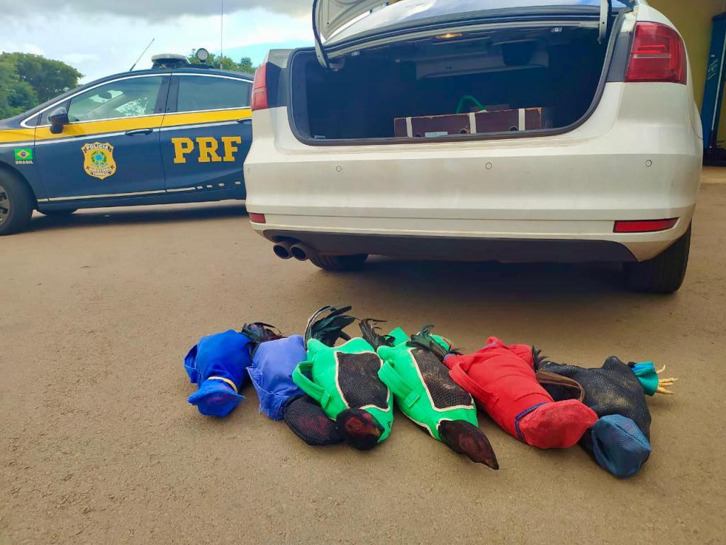 Além de usar o carro oficial do município, realizar uma manobra proibida colocando a vida de outras pessoas em risco e estar levando 6 galos de rinha, os animais estavam acondicionados em sacos presos e em condições precárias no porta malas.