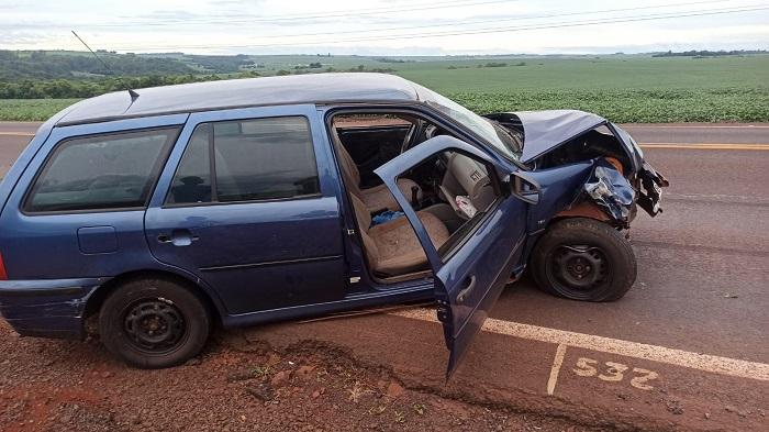 O Volkswagen Parati trafegava na tarde desta quinta-feira na rodovia PR 317 no sentido a Toledo e nas proximidades do campo de golfe do Olinda Park Hotel colidiu em um caminhão que estava parado.