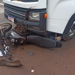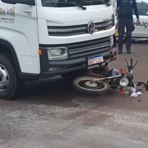 A PM e a Guarda Municipal que atenderam a ocorrência que a colisão aconteceu quando a motociclista trafegava pela Rua Sarandi e o caminhão seguia pela rua Nossa Senhora do Rocio e no cruzamento das vias aconteceu a batida.
