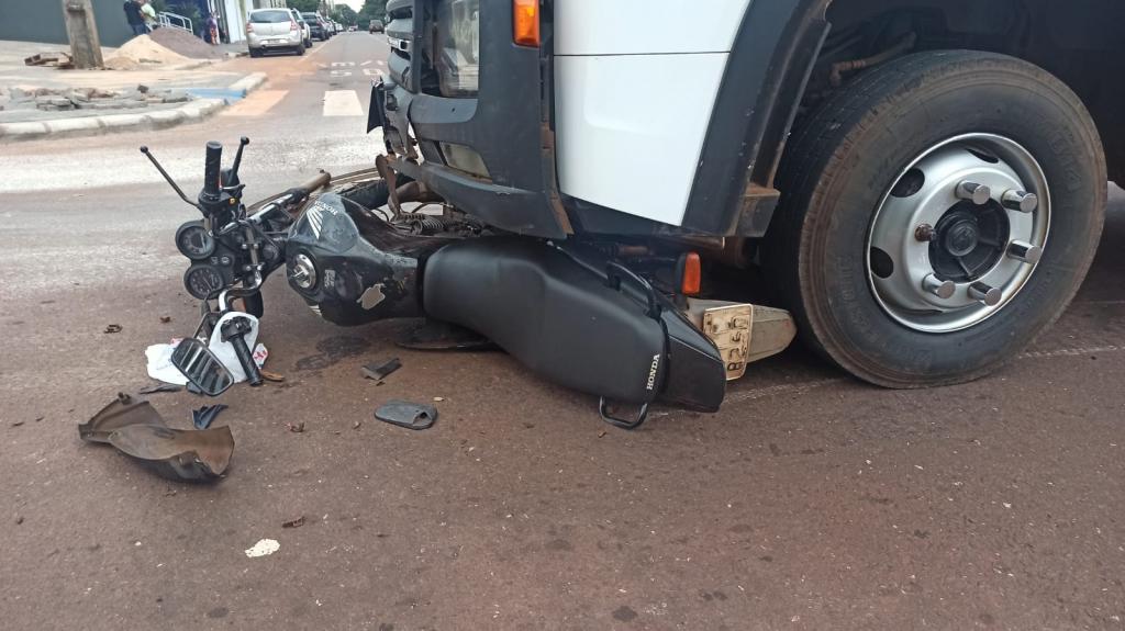 Após a colisão a moto ficou presa embaixo do caminhão, uma equipe do corpo de bombeiros socorreu a vítima com uma fratura exposta na perna esquerda e encaminhou a vítima para atendimento hospitalar.