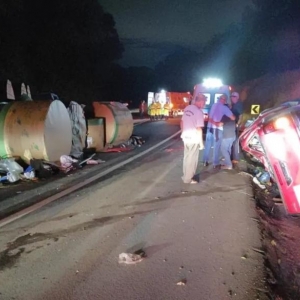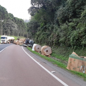 O passageiro morreu e outros dois ocupantes de uma caminhonete ficaram feridos após a bobina de caminhão cair sobre o veículo no km 128 da BR-277, em Campo Largo, na Região Metropolitana de Curitiba, na noite de terça-feira (23).