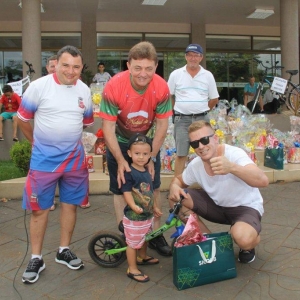 E entre os demais participantes foram sorteadas 46 cestas natalinas e quatro bicicletas. O Passeio Ciclístico de Natal faz parte da programação do 10º Natal da Família nova-santa-rosense.