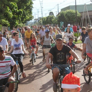 O tradicional Passeio Ciclístico de Natal reuniu 593 pessoas, neste sábado (15) em Nova Santa Rosa. A pedalada saiu do Teatro Municipal Gustavo Fischer, percorrendo as ruas da cidade e retornando ao teatro para a entrega da premiação.