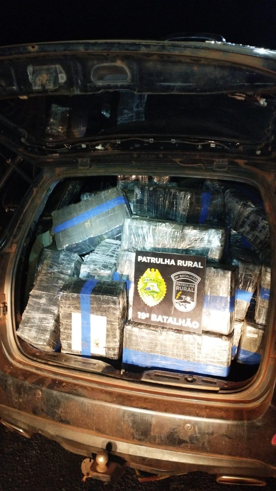 No interior da caminhonete, os policiais localizaram uma grande quantidade de tabletes de maconha. Após contato com a Polícia Federal, o veículo e o entorpecente foram levados para Cascavel, onde a carga foi pesada: 1.419 quilos da droga foram apreendidos, além de um rádio comunicador tipo PX.