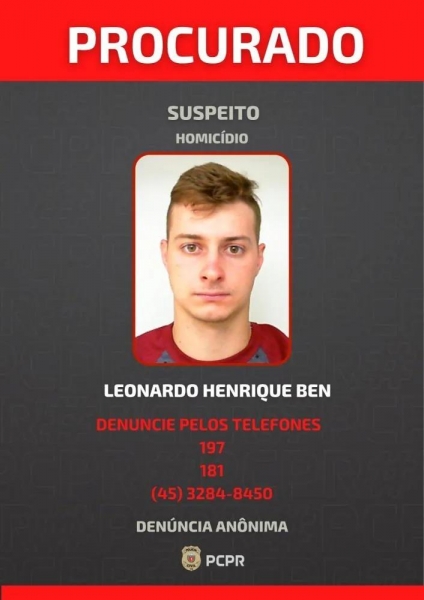 A Polícia Civil do Paraná (PCPR) divulgou a foto de um homem, de 21 anos, suspeito de envolvimento em um homicídio ocorrido no dia 19 de março deste ano, no município de Entre Rios do Oeste.