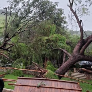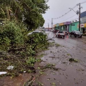 Conforme a Defesa Civil, a cidade contabilizou ainda oito postes caídos e 12 árvores derrubadas, além de 20 pontos comerciais e oito prédios públicos danificados.