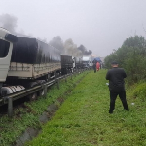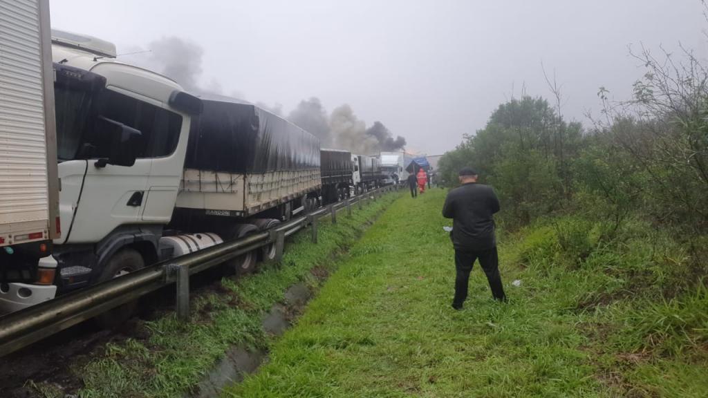 “Parece cena de filme. Graças a Deus estou bem, mas não deu pra fazer nada. Tinha muita neblina, quando fui ver a fila estava parada, foi batendo um caminhão atrás do outro. Pisei no freio, mas não segurou. O meu caminhão pegou fogo na hora da batida. Muita gente correu com extintor para ajudar a apagar as chamas, mas não deram conta”, explicou. Wagner Gabriel Gabardo foi mais um motorista que sobreviveu ao engavetamento.
