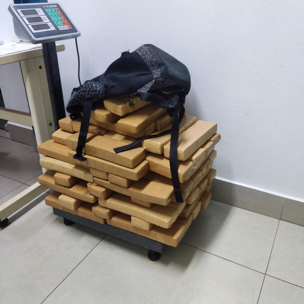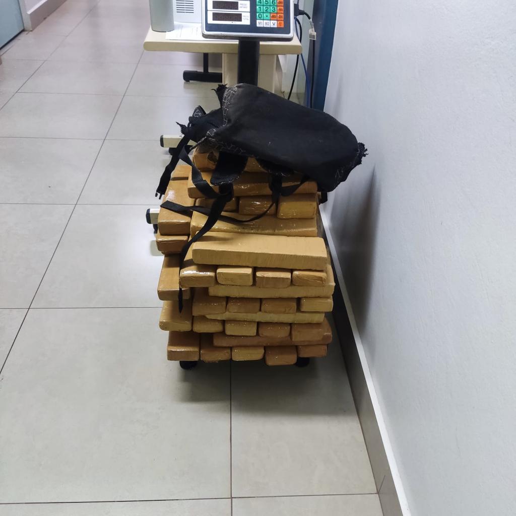 Na vistoria do carro, os policiais encontraram 75 tabletes de maconha no porta-malas, sendo 17 acondicionados em uma mochila e 58 escondidos dentro de uma caixa de som. A carga totalizou 57,150 kg da droga.