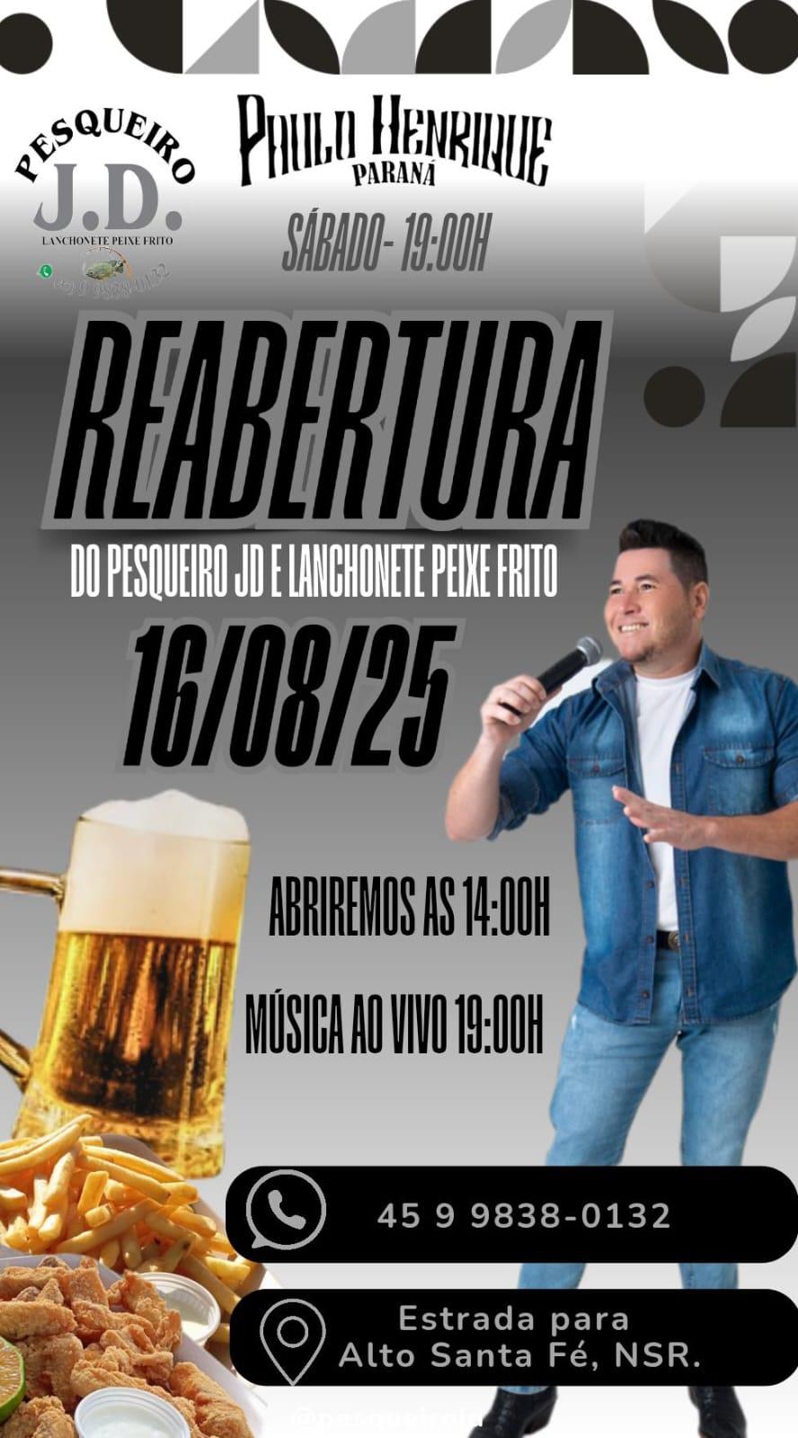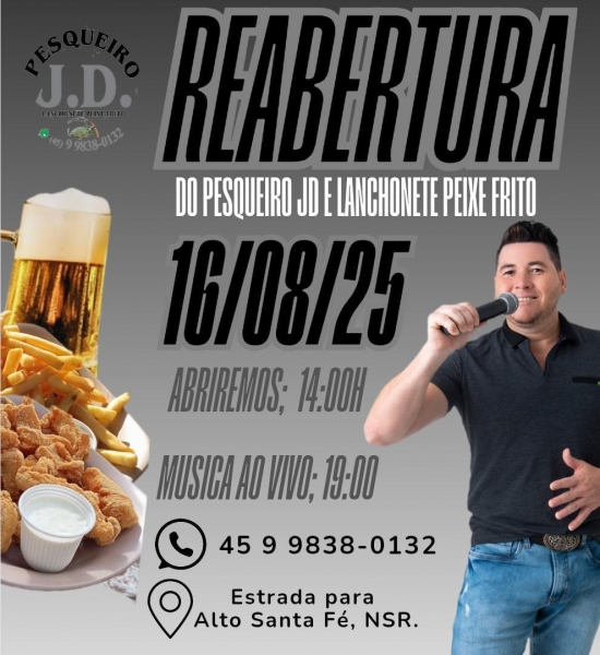 O Pesqueiro JD neste sábado dia 16 de agosto a partir das 14 horas abre a sua nova temporada.