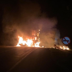 Pessoa morre carbonizada em grave acidente na BR-163 entre Mercedes e Guaíra