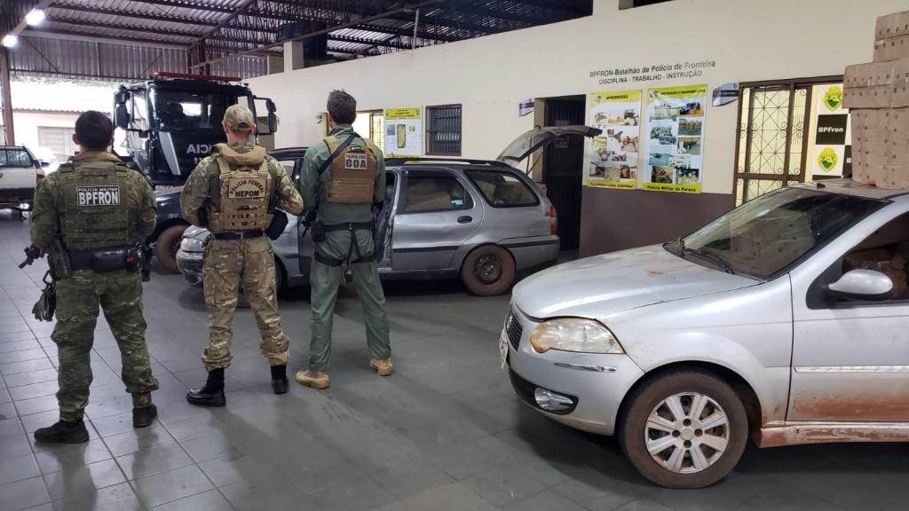 Os veículos estavam carregados com 4.000 pacotes de cigarros contrabandeados, além de mercadorias diversas de origem estrangeira.