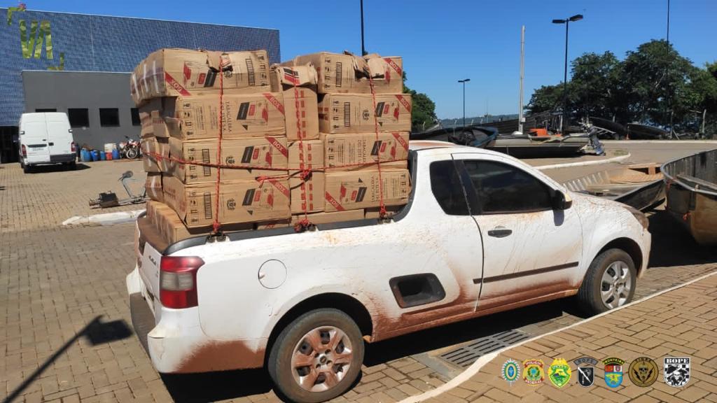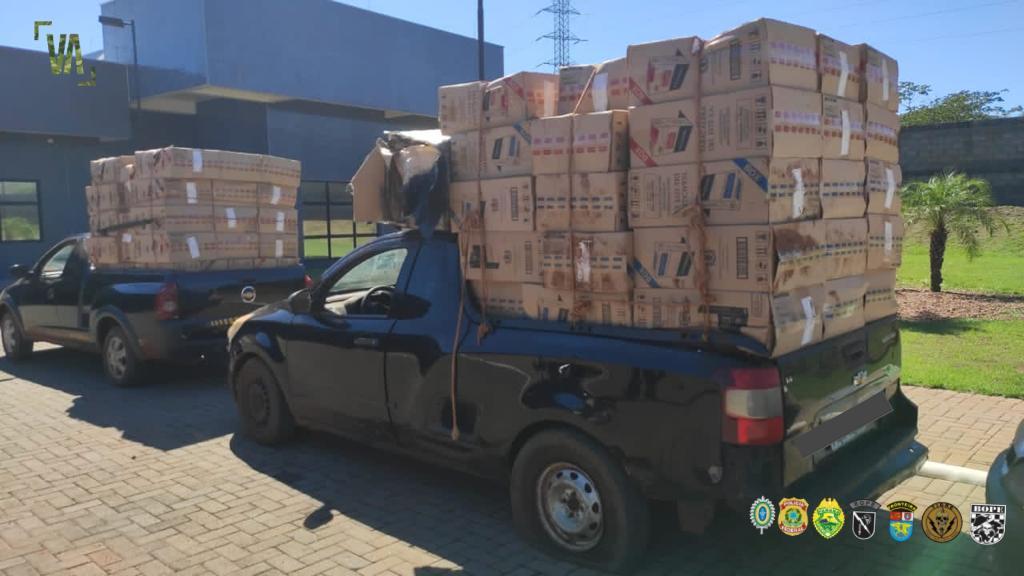 A eficiente ação policial conjunta entre Polícia Federal e BPFron, resultou na apreensão de 7 veículos diversos (01 Van), (01 GM vectra), (03 GM Montana), (01 Fiat Fiorino) e (01 Fiat Doblò) totalmente carregados, somando a quantia de aproximadamente 500 caixas de cigarros paraguaios e alguma armas de airsoft. acarretando num prejuízo aproximado de R$ 1.500.000,00 (um milhão e quinhentos mil reais) ao crime organizado da região.