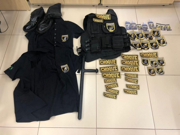 Durante o procedimento foram arrecadados documentos, placas de coletes balístico e bastões que eram utilizados nas atividades clandestinas.