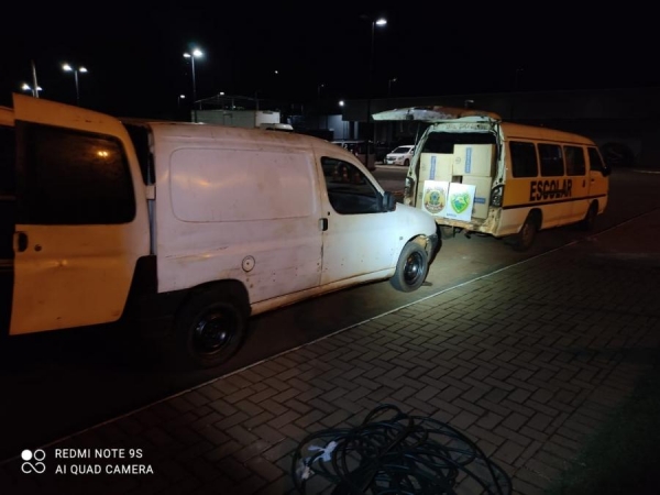 Ao perceberem a ação policial, os criminosos abandonaram parte do carregamento ilícito e dois veículos, e empreenderam fuga pela mata fechada da região, não sendo localizados.