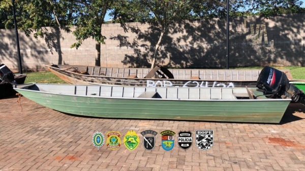 No local foram apreendidos 01 embarcação de alumínio, equipada com motor 40HP e 01 veículo Montana, ambos carregados com aproximadamente 50 caixas de cigarros paraguaios e o carregamento completo representa um prejuízo de aproximadamente R$ 100.000,00 (cem mil reais) ao crime organizado da região.