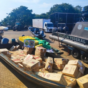 Na quarta-feira (14), Policias federais e Policiais militares do BPFRON/PMPR, em uma operação conjunta, realizavam patrulhamento embarcado no Lago de Itaipu, quando visualizaram movimentação atípica de embarcações e pessoas em um porto clandestino da região.