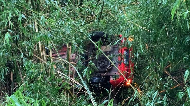 Um picape Volkswagen Saveiro capotou e foi parar em meio a região de mata no km 105 da BR-467, em Cascavel, sentido Toledo, no oeste do Paraná, na tarde desta terça-feira (14). O acidente aconteceu perto da empresa Plantar, que realiza o comércio de insumos.